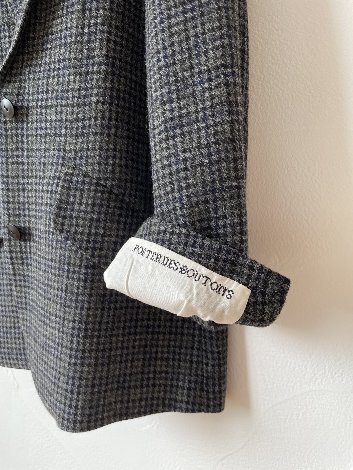 袖口の裏地にはポルテデブトンのブランドネームが刺繍されていて、