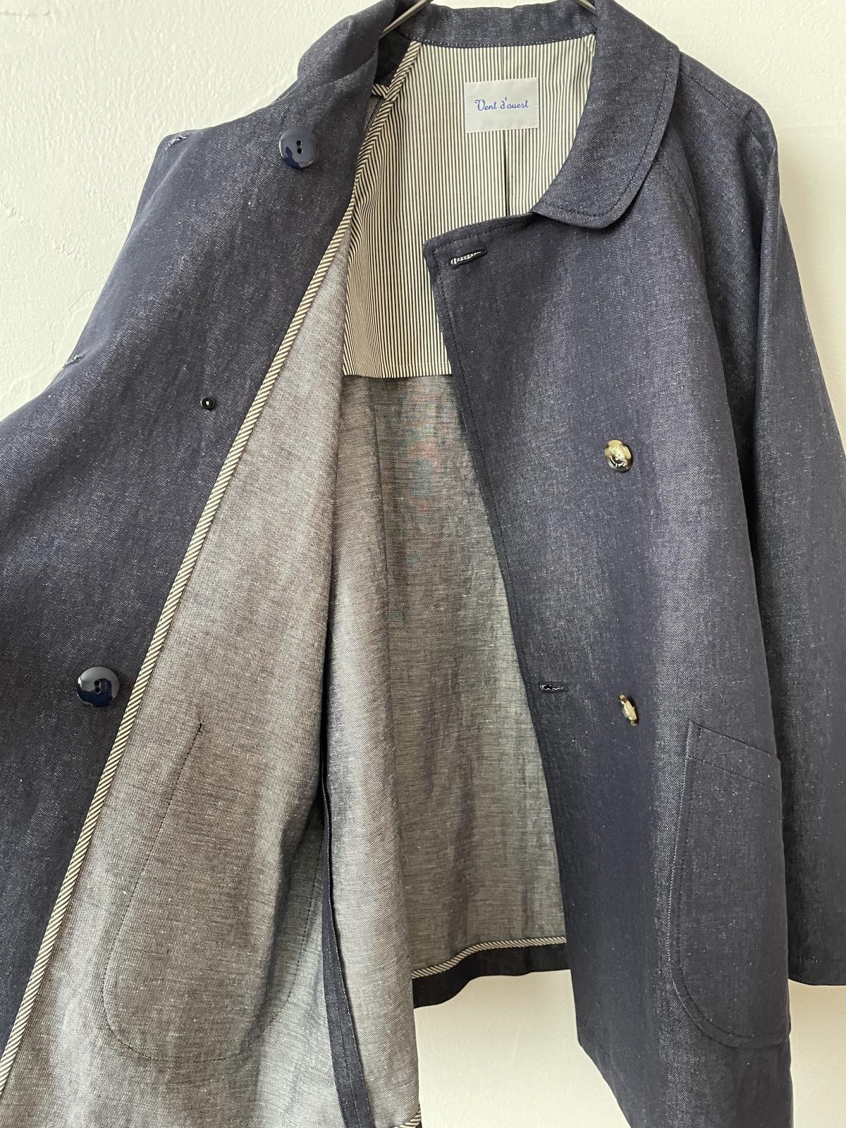 Vent d'ouest REACTIVE LINEN DENIMダブルボタンコート(インディゴ)