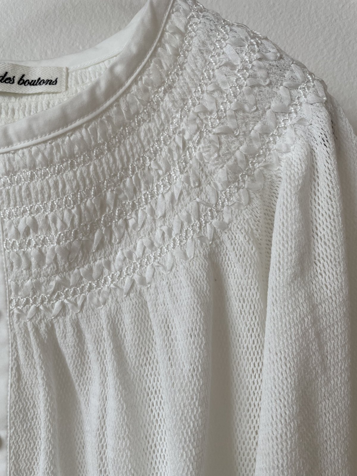 Porter des boutons リボンスモッキングブラウス(オフホワイト)