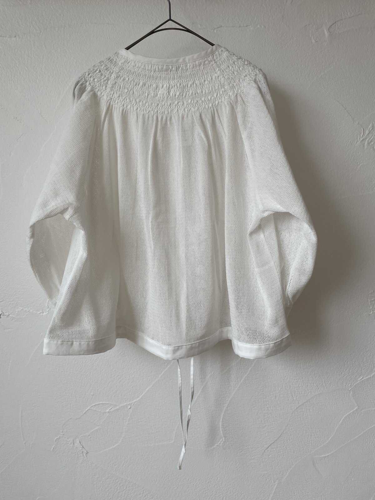Porter des boutons リボンスモッキングブラウス(オフホワイト) [P21-3-011-02]